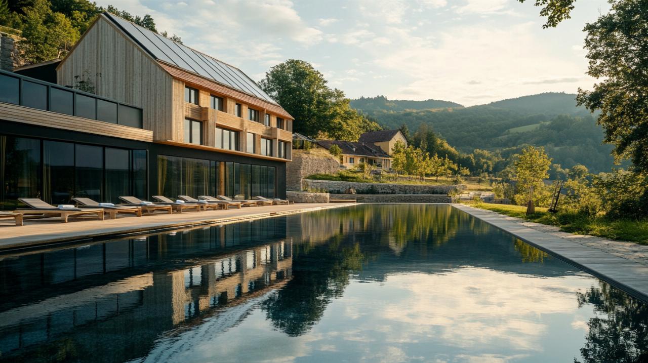 La piscine intérieure de La Loge aux Loups maintient une température constante de 31 degrés Celsius grâce au système géothermique de l'établissement. Cette prouesse technique illustre parfaitement comment technologie et écologie peuvent se conjuguer pour offrir un confort optimal tout en minimisant l'impact environnemental. L'eau chauffée naturellement par les ressources du sous-sol vosgien permet des baignades agréables en toute saison, sans recourir à des systèmes de chauffage énergivores.